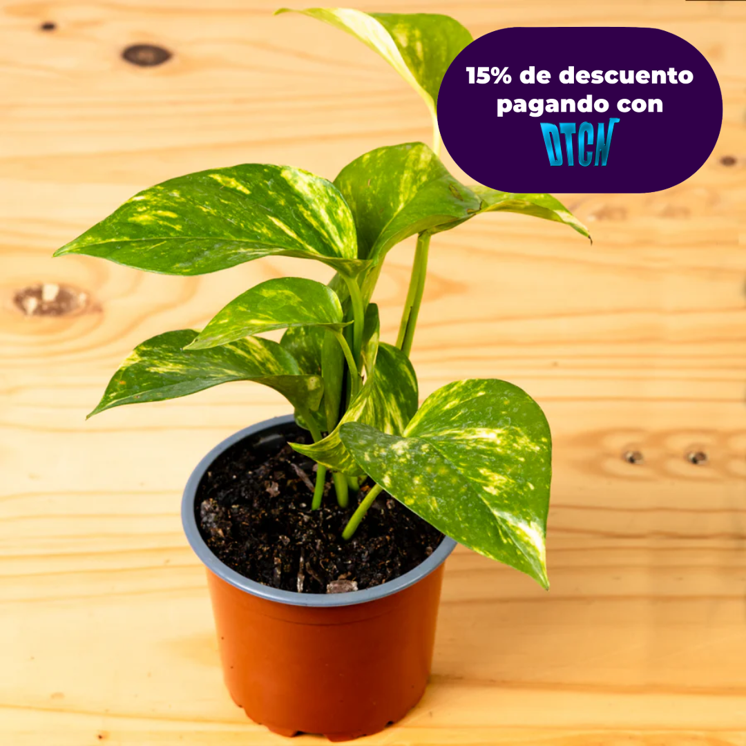 El potus es una planta de interior, el riego se hace cada 4 o 5 días evitando encharcamiento y manteniendo el sustrato húmedo, se recomienda fertilizar quincenalmente con follaje o abonar la tierra.